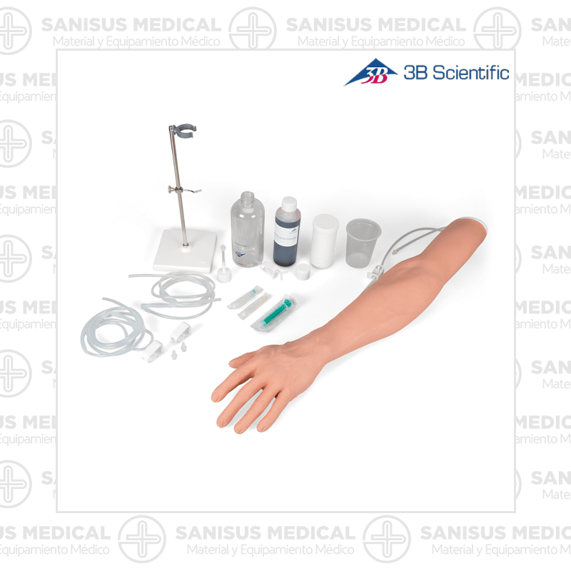 Brazo para formación de Inyección Venoso P50/1, fabricado en silicona 3B SKINlike es único tanto en calidad como en diseño, y permite una formación realista para mejorar la competencias del personal sanitario. Además es muy apropiado para el aprendizaje en grupo, puesto que se trata de un producto de alta calidad, resistente a las manchas y fabricado con un producto blando fácil de limpiar.