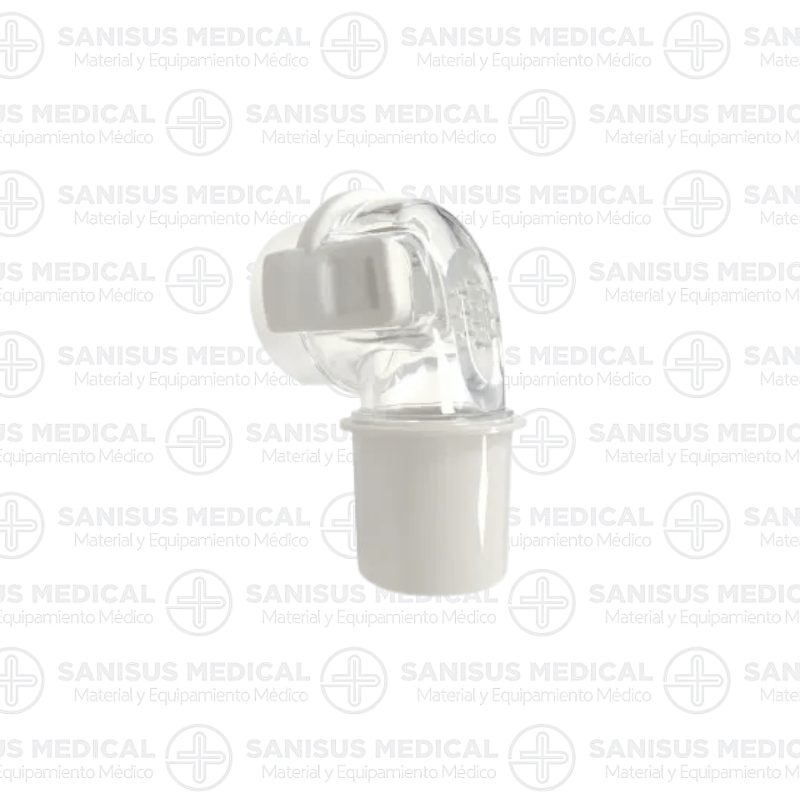 Fabricado con materiales resistentes y ligeros, este codo asegura un flujo de aire constante y estable, manteniendo la eficacia de tu tratamiento CPAP y prolongando la vida útil de tu mascarilla.