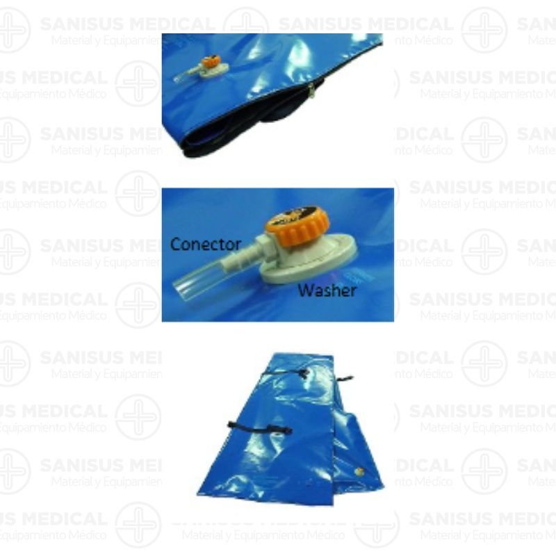 El Colchón de Vacío 130/65×205 con 8 asas y Bomba de Vacío Super 4 de Pie es un sistema de inmovilización integral diseñado para ofrecer una sujeción eficaz, segura y adaptable en situaciones de emergencia. Su estructura rellena de microesferas permite moldear el colchón al contorno del paciente, proporcionando una inmovilización completa y estable sin generar puntos de presión.