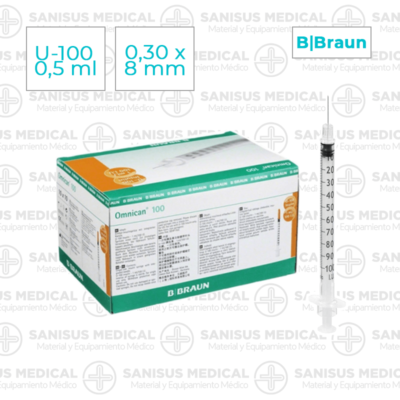 Jeringa 0,5ml 30G 0.30x8mm Insulina con aguja Braun Omnican