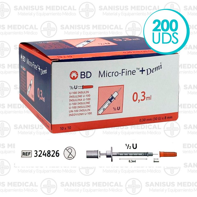 Jeringa 0,3ml 30G 0.3x8mm Insulina con aguja