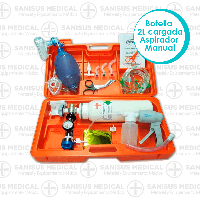 Maletín de oxigenoterapia Con Aspirador Manual E-430 botella 2 Lts cargada
