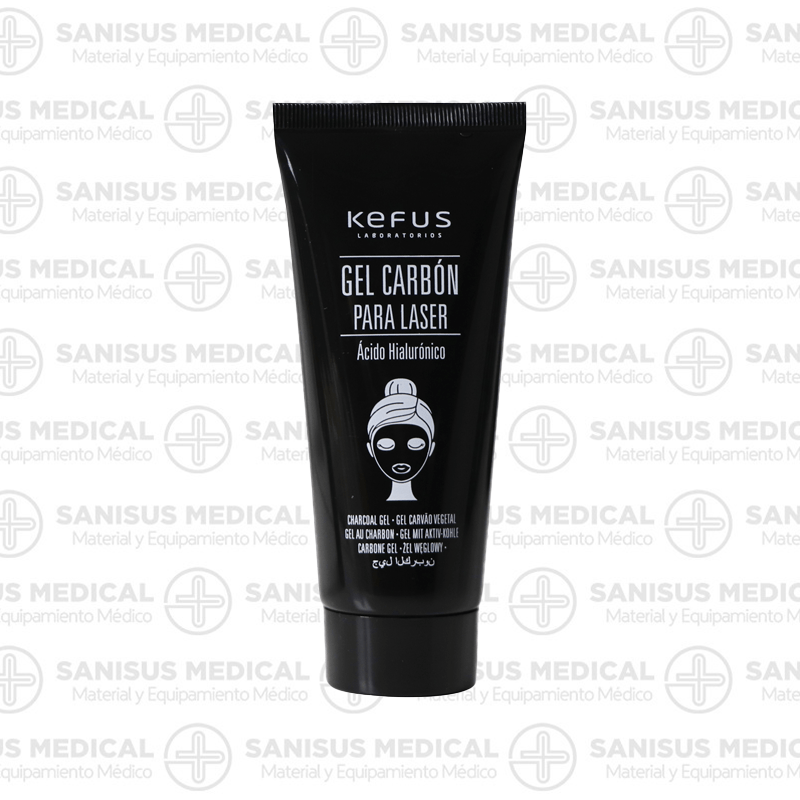 Mascarilla gel carbón para laser ácido hialurónico Kefus para realizar terapias de fotorejuvenecimiento y antiacné con tecnología láser.
