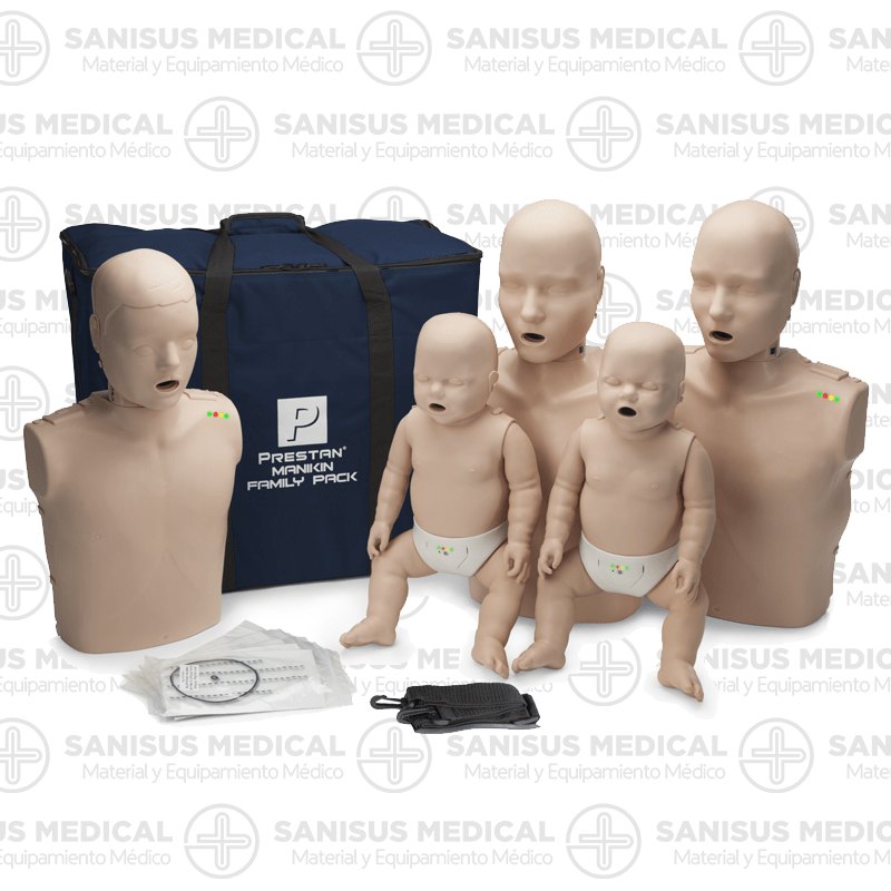 La Colección Family Pack de la firma Prestan® constituye la herramienta perfecta para impartir cursos de formación en RCP en tanto contiene (2) torsos adulto, (2) maniquíes neonatos y (1) torso pediátrico de RCP especialmente diseñados para la formación y entrenamiento de la técnica de resucitación cardiopulmonar. Poseen el máximo realismo tanto a la vista como al tacto.