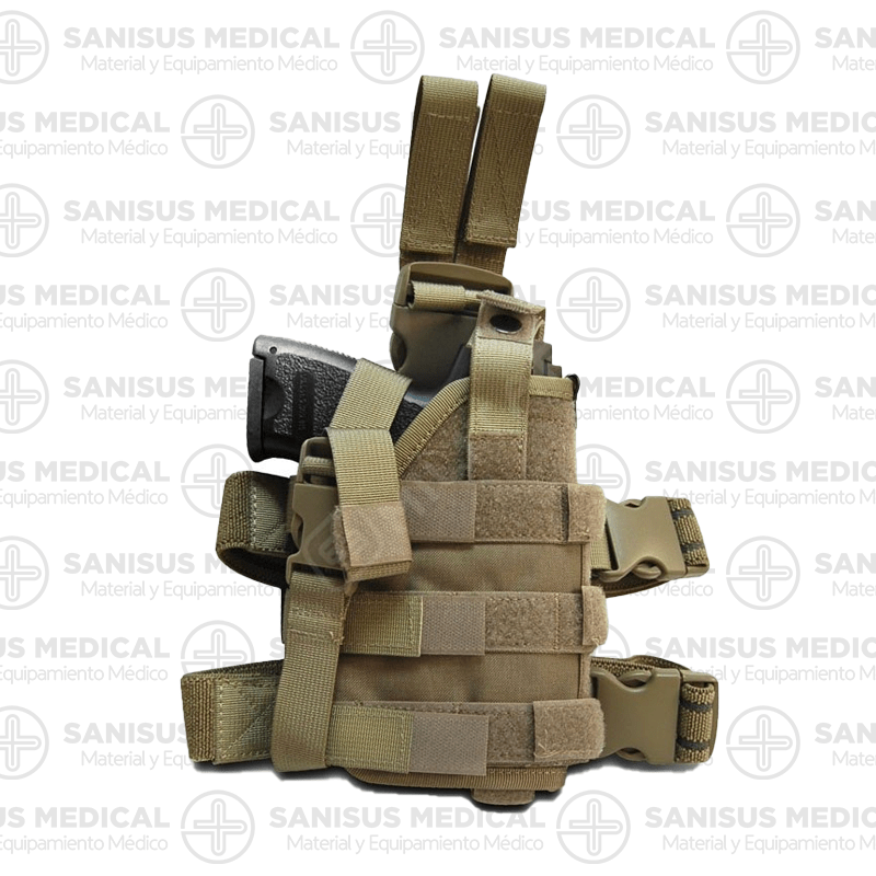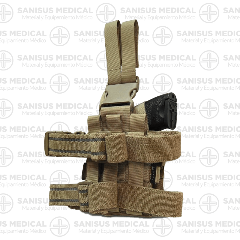 Sujeción segura y cómoda: incorpora dos bandas antideslizantes para muslo y dos tiras verticales para el cinturón que permiten múltiples posiciones de uso y fijación firme. Además es totalmente modular gracias a tres cintas MOLLE integradas, facilitando su anclaje a chalecos o paneles.