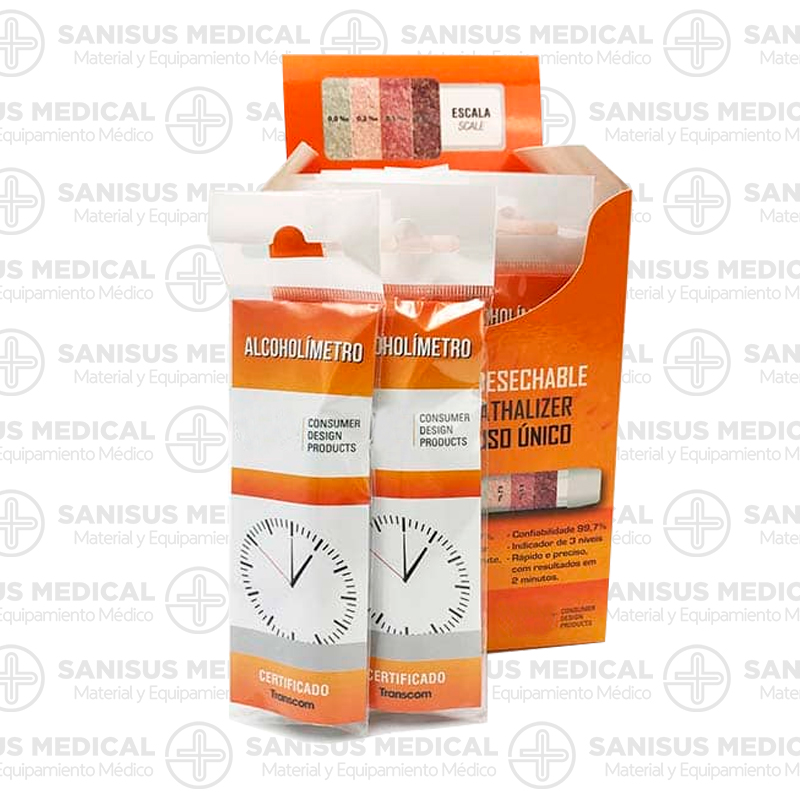 El alcoholímetro desechable de un solo uso es un alcoholímetro muy fiable de un solo uso que permite determinar con una precisión superior al 98% la concentración de alcohol que hay en sangre a través de una muestra de aire espirado en cuatro niveles de medida: de 0,00 / 0,20 / 0,50 / 0,80 g/L.